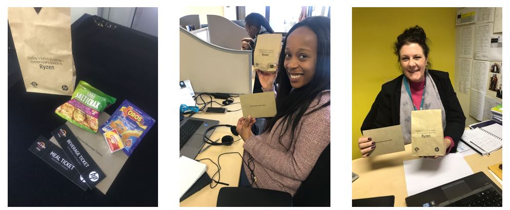 The day before the event, everyone who was invited received a care package “desk drop” containing a very average lunch, with a note that read “Today’s lunch is ok… tomorrow’s lunch is Ryzen“.